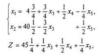 Решая полученную каноническую задачу (без условия цело-численности) симплексным методом, на последнем, III шаге, решения найдем следующие выражения основных переменных и линейной функции через неосновные переменные (рекомендуем студентам получить их самостоятельно).