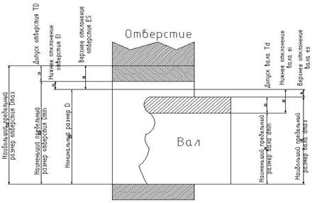 Разность размеров отверстия и вала до сборки определяет характер соединения деталей, или посадку.