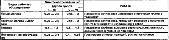 Вид рабочего оборудования уточняется в зависимости от характера работ (табл. 1.1).