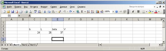 Запишем в ячейках рабочего листа Excel входные данные как показано на рис.1.