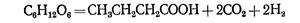 Маслянокислое брожение представляет собой сложный процесс превращения сахара маслянокислыми бактериями в анаэробных условиях с образованием масляной кислоты, углекислого газа и водорода по уравнению