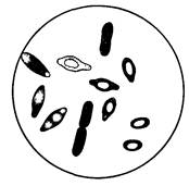 Дельбрюковская палочка – зерновая термофильная палочка (L. delbrueckii), которая встречается поодиночке, короткими и длинными цепочками. Не сбраживает лактозу, поэтому в молоке не развивается. Оптимум температуры 45– 50 °С, минимум 20°С. Образует в субстрате до 2,5% кислоты. Применяется в производстве молочной кислоты и хлебопечении. | Молочнокислая палочка (L. plantarum)–небольшие палочки, часто сцепленные попарно или цепочкой. Температурный оптимум около 30°С. Накапливает до 1,3% кислоты. Это основной возбудитель брожения при квашении овощей и силосовании кормов.