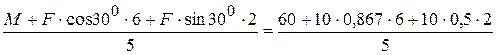 +F1 ×cos600 =21,68+10×0,5=26,68 кН