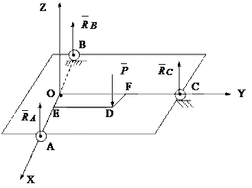 в точках А,В,С. Имеем пространственную систему параллельных сил.