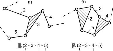 Группы Ассура более высокого класса представляют собой сложные замкнутые КЦ, для которых выполняется соотношение (1.3). На рис.1.12 изображены схемы и приведенны структурные формулы строения групп Ассура III-го и IV-го класса, кинематические цепи которых содержат шесть КП 5-го класса и четыре звена (