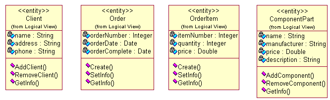 Создадим классы-сущности Order (Заказ), Client (Клиент) и ComponentPart (Комплектующее изделие). Поскольку в один заказ может входить много разных комплектующих изделий, и одно комплектующее изделие может входить во много заказов, то введем еще один класс-сущность OrderItem (Состав заказа). Опишем каждый класс.