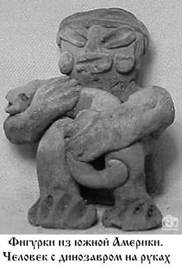 Если допустить, что мы одни во вселенной и происхождение жизни на земле имеет местные корни, что появление человека, всё равно стоит относить к далёкой древности. Возможно даже ко временам динозавров или сразу после их исчезновения. Иначе как объяснить фигурки, на которых люди и динозавры изображены вместе.