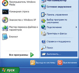 а. На рабочем столе Windows XP нажмите кнопку «Пуск», а затем выберите команду Run (Выполнить).