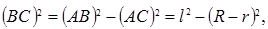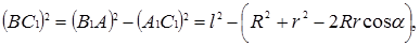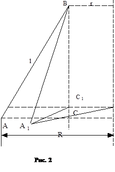 Если l – длина нитей подвеса, R- расстояние от центра платформы до точек крепления нитей на ней, r – радиус верхнего диска, то легко видеть (рис.2), что