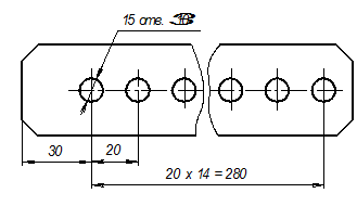 1. Цепной способ. Размеры отдельных элементов детали наносят последовательно, как звенья одной цепи. Этот способ находит наименьшее применение (рис. 4.14).