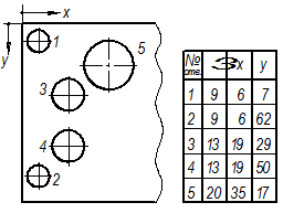 в сводной таблице, при этом применятся координатный способ нанесения размеров отверстий с обозначением их арабскими цифрами или обозначением однотипных элементов прописными буквами (рис. 4.25).