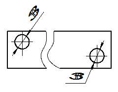 Часто простановка размеров от конструкторских баз не совпадает с простановкой от технологических баз. В качестве базовых поверхностей используют: плоскость, от которой начинается обработка (опорная, а также направляющая или торцевая поверхности), прямые линии − оси симметрии, оси отверстий (скрытые базы) или какие-либо взаимно перпендикулярные прямые, например, кромки деталей (рис. 4.13).