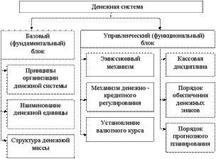С точки зрения институционального аспекта денежная система представляет собой совокупность институтов, создающих и регулирующих экономические и правовые основы эмиссии денег, способы их обращения, аккумулирования, распределения и перераспределения.