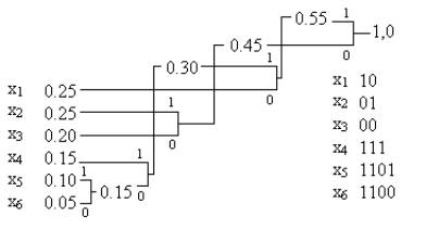Совмещенный способ построения кода Хаффмана – объединение двух процессов: обычного алгоритма построения и метода дерева.