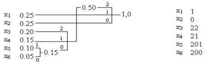 Код Хаффмана позволяет производить кодирование и при использовании вторичного алфавита с основанием D больше 2, например при D=3.