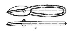 Ручные ножницы (рисунок 4) бывают правыми и левыми. У правых ножниц скос на режущей части на каждой из половин находится с правой стороны, а у левых - с левой. Ручными ножницами можно резать листовую сталь толщиной до 0,7 мм, кровельное железо толщиной до 1,0 мм, листы меди и латуни толщиной до 1,5 мм.