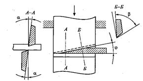 α – задний угол; β – угол заострения; φ – угол между лезвиями