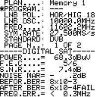 Если все установки были сделаны правильно, то в нижней части меню появятся значения, которые определяются прибором и являются параметрами принимаемого пакета. Обратите внимание на числа в пунктах меню BEFOR. BERи AFTER BER. Их отношение В/А характеризует исправляющее действие системы помехоустойчивого декодирования.
