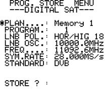 После приема выбранного пакета, его необходимо зафиксировать в памяти прибора. Это действие производится при помощи нажатия кнопки PROG STORE. При этом на монитор прибора будет выведено следующее меню (рисунок Б.4).