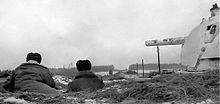 Расчёт противотанкового ружьяПТРД-41 на позиции во время битвы за Москву. Московская область, зима 1941—1942 года