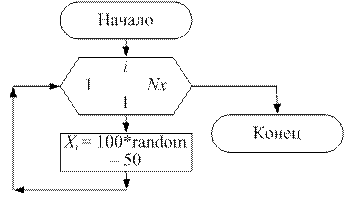 Процедуру ввода элементов массива назовем EnterMassiv, в списке формальных параметров укажем следующие переменные: массив X и количество элементов в массиве Nx. При этом в списке формальных параметров массив должен быть указан со служебным словом var, поскольку значения элементов массива изменяются в процедуре и возвращаются в основную программу. Внутри процедуры формирование элементов массива выполним с помощью генератора случайных чисел random.