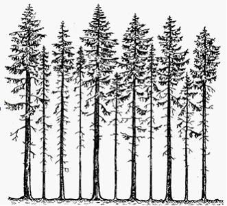 На рисунке представлена посадка ели обыкновенной, в которой можно различить особи с различной степенью угнетения, что является примером __________________ биотических факторов среды.