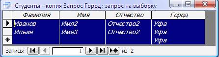 Создание запроса в режиме конструктора => таблица Студенты - копия => Добавить => Закрыть