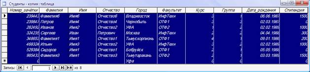 таблица Студенты => Копировать => Вставить => Имя таблицы: Студенты - Копия