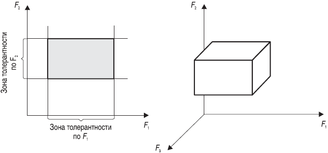 Модель экологической ниши, предложенная Г. Е. Хатчинсоном, довольно проста: достаточно на ортогональных проекциях отложить значения интенсивности различных факторов, а из точек пределов толерантности восстановить перпендикуляры, то ограниченное ими пространство и будет соответствовать экологической нише данного вида (рис. 4.3). Экологическая ниша ¾ это область комбинаций таких значений факторов среды, в пределах которой данный вид может существовать неограниченно долго.