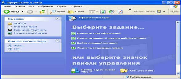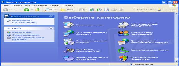 Упражнение 3. Используя Панель управления, просмотрите информацию о компьютере. Для этого в окне Панель управления выберите категорию - Производительность и обслуживание, в списке заданий - Просмотр информации об этом компьютере.