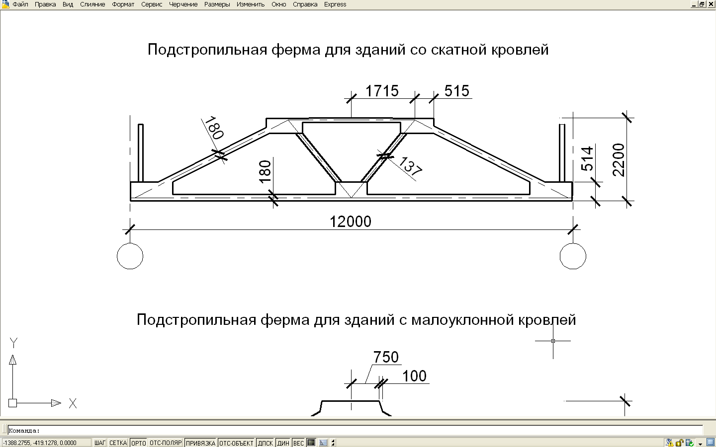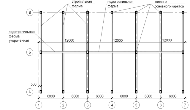Рисунок - Подстропильная ферма для зданий со скатной кровлей
