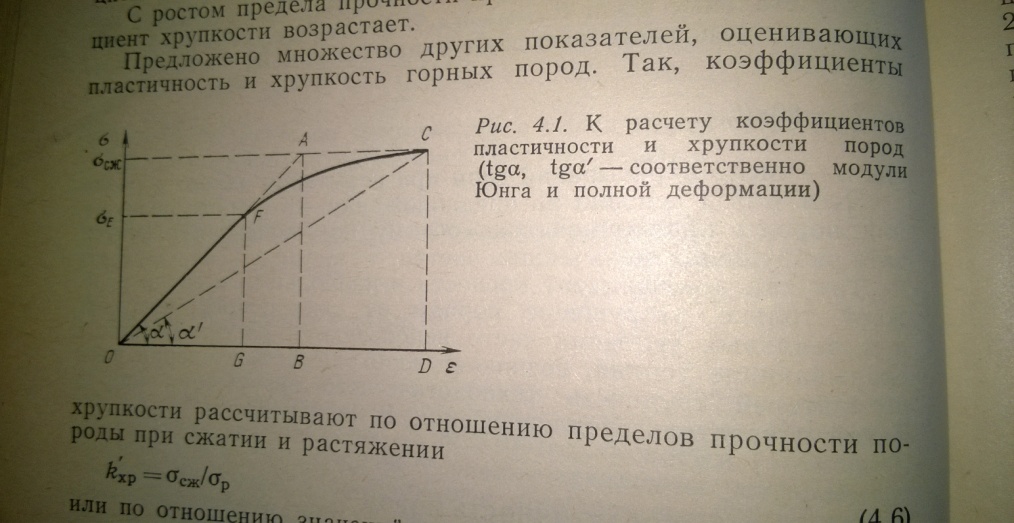 Так в качестве технологического показателя пластичности принимают параметр, определяющий, во сколько раз удельная работа разрушения образца реальной породы Ар при одноосном сжатии выше удельной работы разрушения идеально упругой породы Ау с тем же пределом прочности при сжатии.