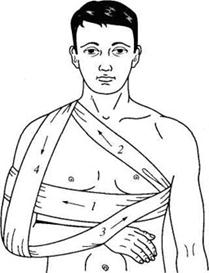 Цель:Фиксация части тела в определенном положении (накладывается после вправления вывиха плеча, при переломе плеча и ключицы).